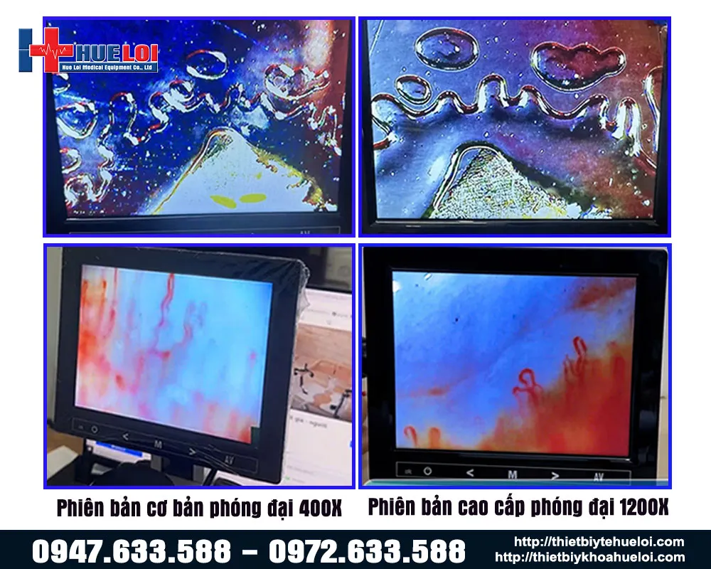 Kính hiển vi có khả năng phóng đại lên đến 1200X, giúp quan sát rõ các mạch máu nhỏ và tốc độ dòng chảy của máu.
