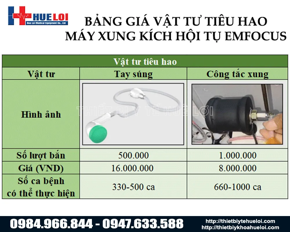=> Ngoài dòng máy sóng xung kích hội tụ EMFOCUS-III, Huê Lợi còn cung cấp nhiều dòng máy xung kích phân kỳ với đa dạng mức giá, phù hợp nhiều nhu cầu điều trị khác nhau. Bên cạnh đó, chúng tôi còn phân phối nhiều thiết bị vật lý trị liệu hiện đại khác. Quý khách có thể xem chi tiết sản phẩm [TẠI ĐÂY].