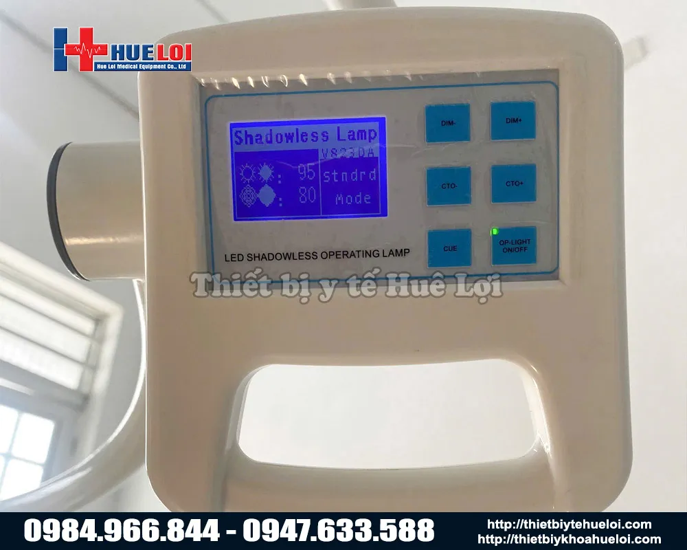 - Đèn phẫu thuật di động ánh sáng lạnh 5 bóng, bóng đèn LED ORSAM nhập khẩu từ Đức, tuổi thọ lên tới 80.000 giờ chiếu sáng, độ rọi sáng 180.000 lux, có thể di chuyển linh hoạt trong phòng mổ.