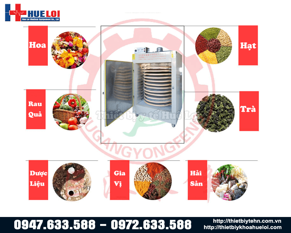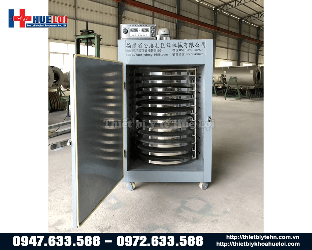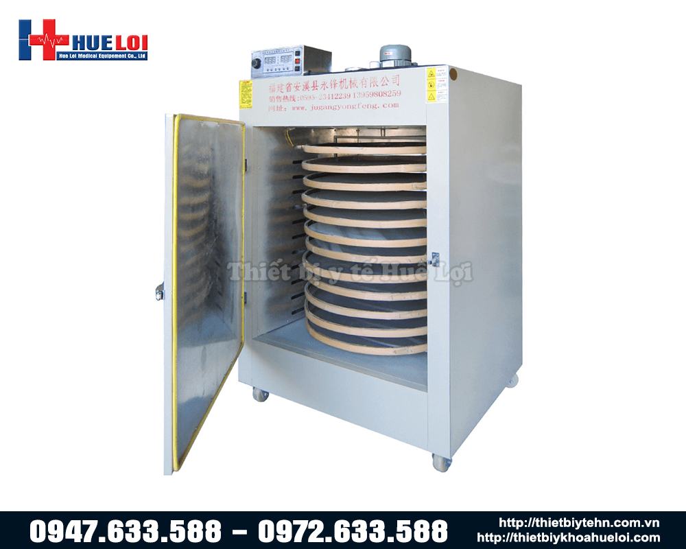 Tủ sấy dược liệu 12 tầng với thiết kế 12 tầng sấy ,với đường kính khay đựng dược liệu là 90cm, công suất 12kW - điện áp 380v, thiết kế thép 304 dày dặn cùng hệ thống khóa cao cấp giúp tránh hao hụt nhiệt, hệ thống điều nhiệt thông minh ở bên trong giúp cho nhiệt độ phân phối đồng đều đến nguyên liệu. Sản phẩm thích hợp sử dụng trong các khoa bào chế đông dược của các bệnh viện hoặc phòng khám Y học cổ truyền,sấy hoa quả ,các loại trà, hạt và nông thủy sản.