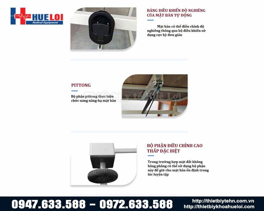 Bàn nhám tập sức mạnh cơ chi trên dùng cho những bệnh nhân tai biến mạch máu não có di chứng yếu liệt tay, thông qua việc đẩy các khối gỗ với các hình dạng khác nhau trên mặt bàn nhám (tạo thành trở lực) từ đó giúp tập tăng sức mạnh các nhóm cơ chi trên. Ngoài ra mặt bàn còn có thể điều chỉnh độ nghiêng qua nút bấm tự động, giúp tăng cường trở lực cho người tập luyện.