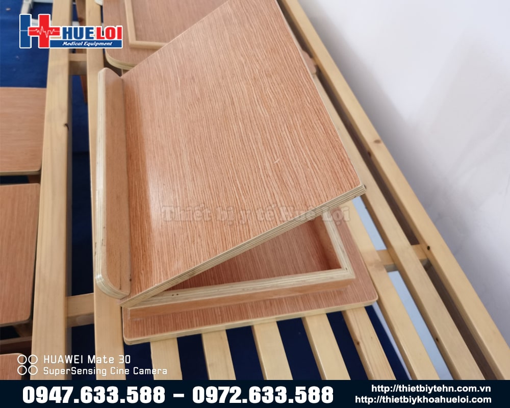 - Giường gỗ: Có thể tùy chỉnh chiều cao của giường cho phù hợp với nhu cầu bằng cách điều chỉnh vị trí các bu lông màu đen ở chân giường.