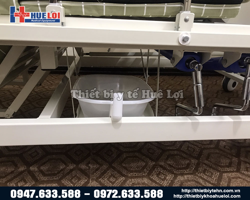 Giường bệnh y tế đa năng giá cả hợp lý, có đầy đủ tính năng nâng lên hạ xuống nghiêng 2 bên trái- phải, có chậu gội đầu và bô vệ sinh ngay tại giường.