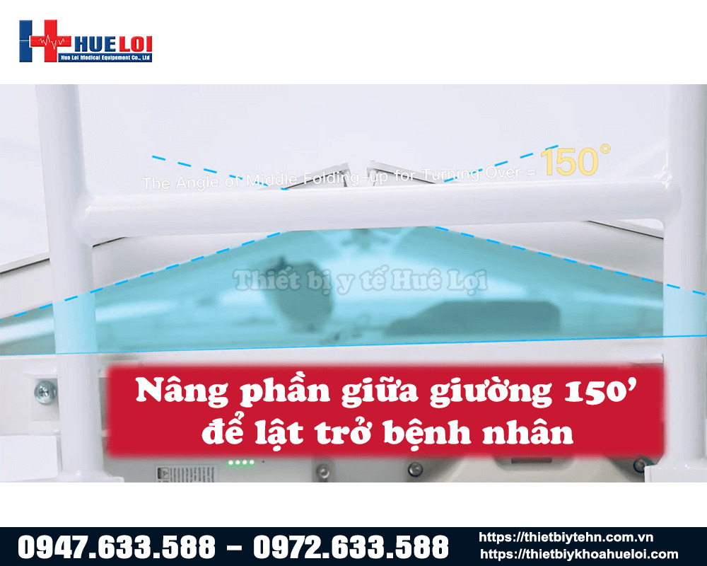 - Nâng phần giữa giường bằng điện để lật trở bệnh nhân