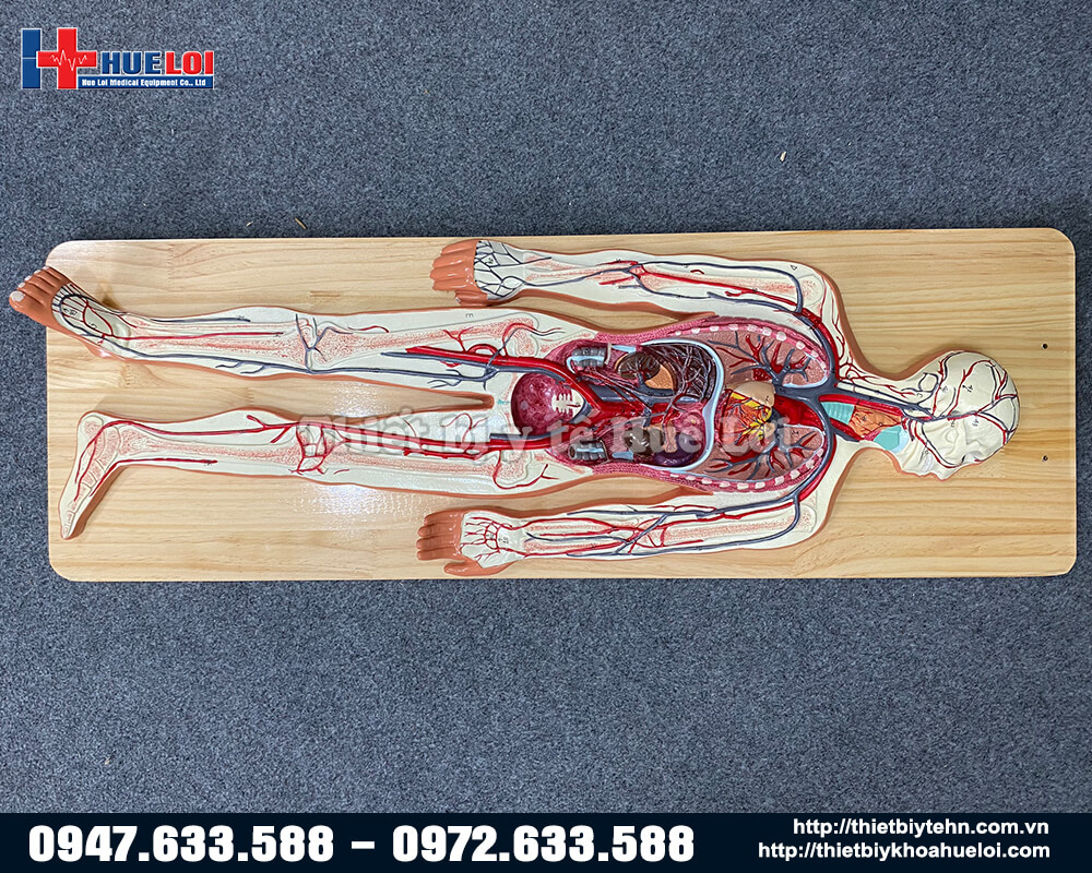 Mô hình hệ tuần hoàn cao cấp mô tả hệ tim và các mạch máu chi tiết trong cơ thể, gồm hệ thống mạch đầu, mạch chi, mạch tạng.
