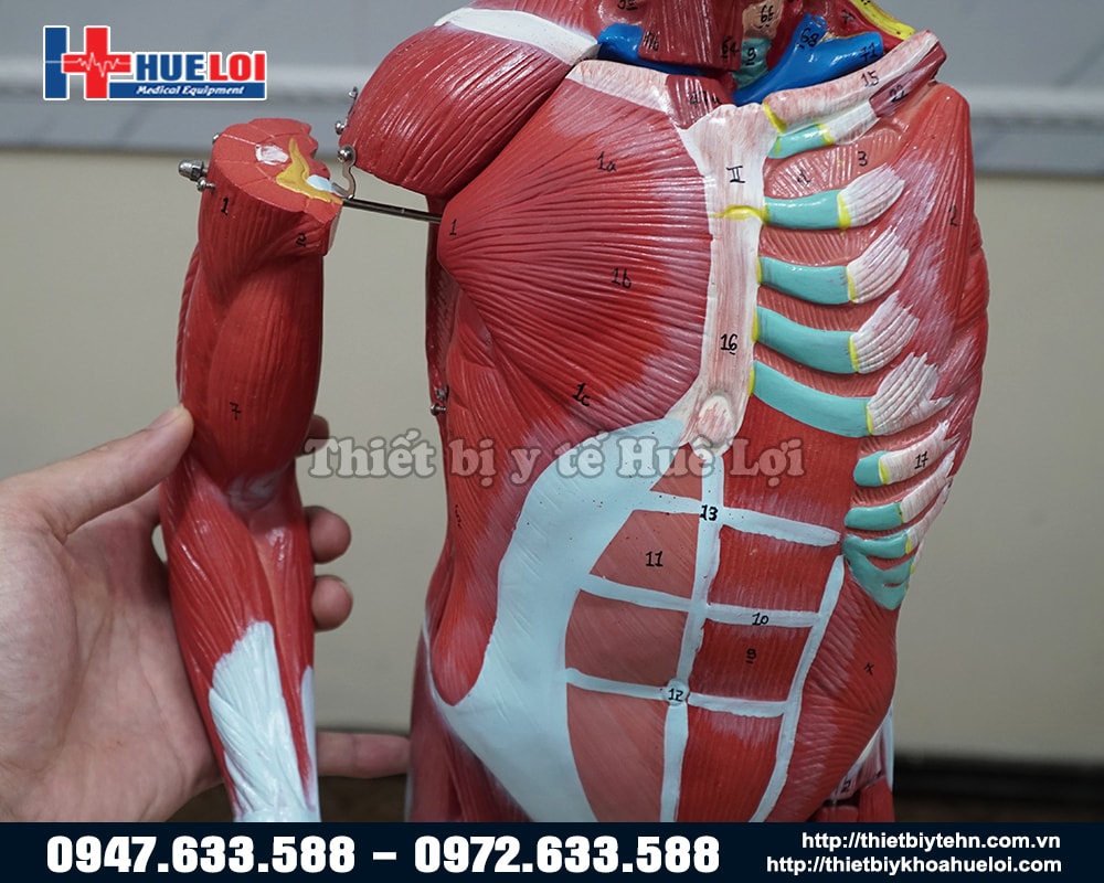 Mô hình giải phẫu cơ và nội tạng 78cm của chúng tôi thể hiện toàn bộ hệ cơ của cơ thể, cùng với các cơ quan nội tạng khác của cơ thể người trưởng thành. Với 27 phần và 238 chi tiết được đánh số thứ tự, mô hình hoàn toàn phù hợp để giảng dạy giải phẫu trong các trường Đại học, Cao đẳng, Trung cấp Y khoa.