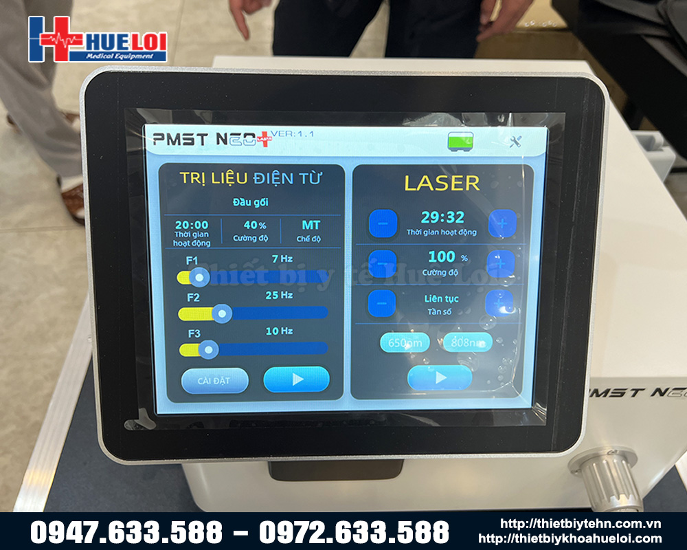 Máy từ trường siêu dẫn kết hợp laser lạnh PMST 4 NEO + là phiên bản cao cấp hơn của PMST 4 NEO, máy sử dụng laser lạnh với bước sóng 650nm và 808nm thay vì dùng hồng ngoại. Điều này giúp máy có thể tác động sâu hơn, hiệu quả hơn so với phiên bản thông thường. Ngoài ra, máy có mức công suất từ trường siêu dẫn lớn hơn (5 Tesla) cùng hệ thống tản nhiệt nước và công suất tối đa máy lên đến 1500W giúp cho PMST 4 NEO + là lựa chọn rất đáng đầu tư trong phân khúc máy từ trường 2 trong 1.